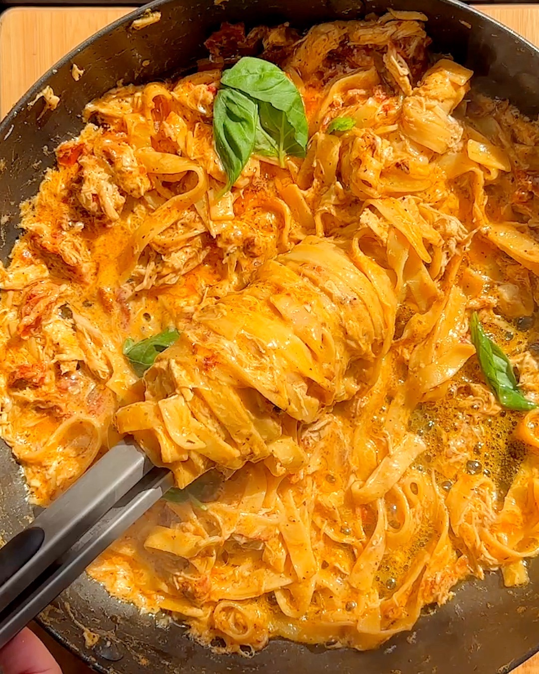 This 15 minute marry me chicken pasta is the ultimate one pan pasta recipe when you need something quick, creamy and packed with flavour. Made using uncooked pasta and leftover roast chicken, everything cooks together in one pan — no boiling, no draining, and minimal effort. The result? A rich, creamy sauce with perfectly cooked pasta that tastes like it took way longer than 15 minutes.