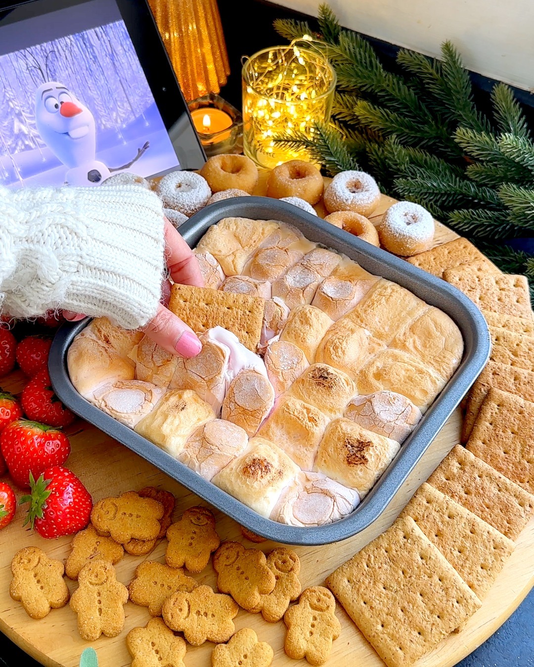 - Optional- Make a dessert board with place graham crackers, strawberries, mini doughnuts or any other items you would love to dip!